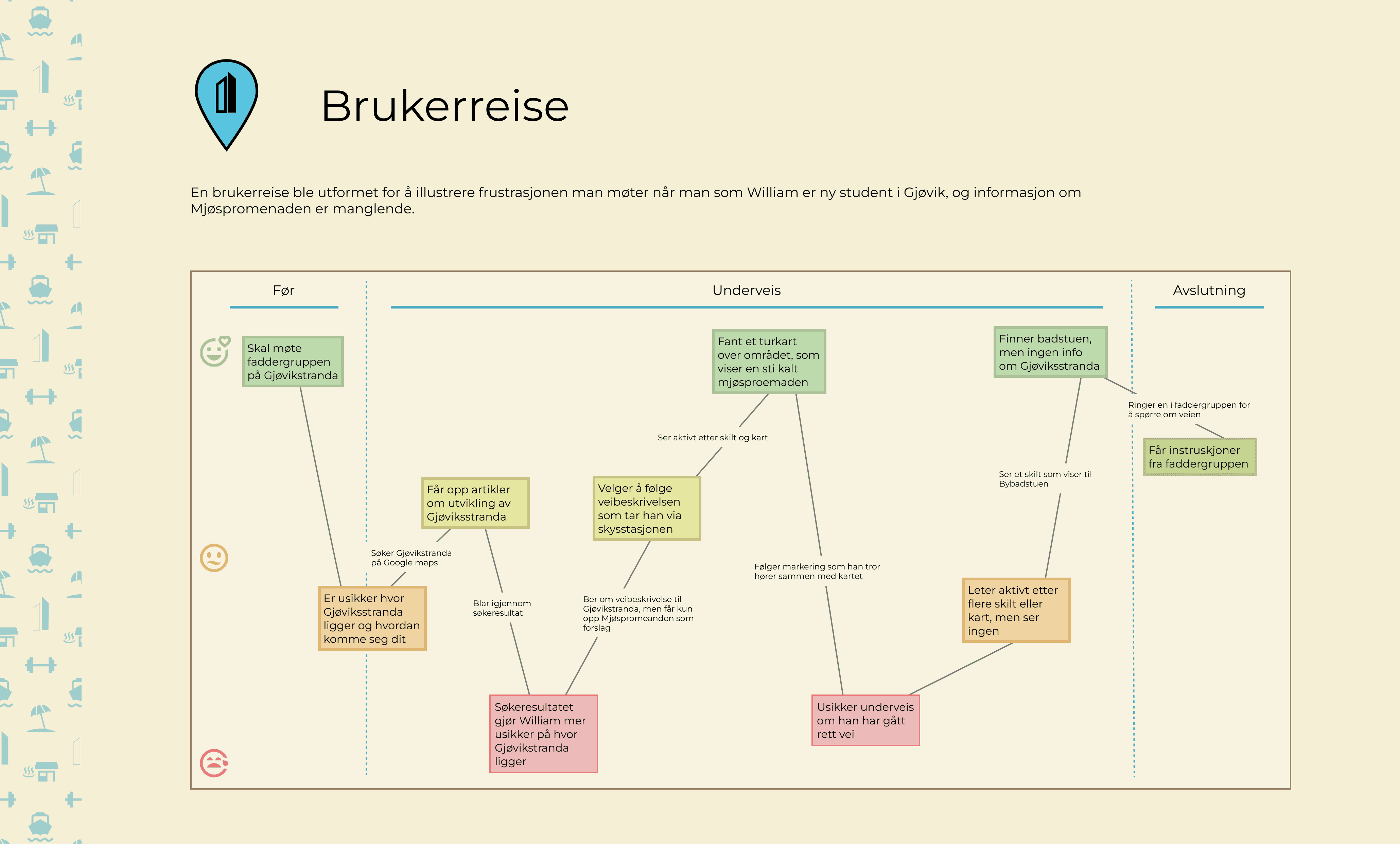 Funnene våre viser at manglende kunnskap og utilstrekkelig kommunikasjon knyttet til Mjøspromenaden bidrar til forvirring og gjør at området ikke blir utnyttet til sitt fulle potensial. Gjennom idéutvikling, prototyping og testing har vi derfor utviklet en rekke anbefalinger og tiltak.